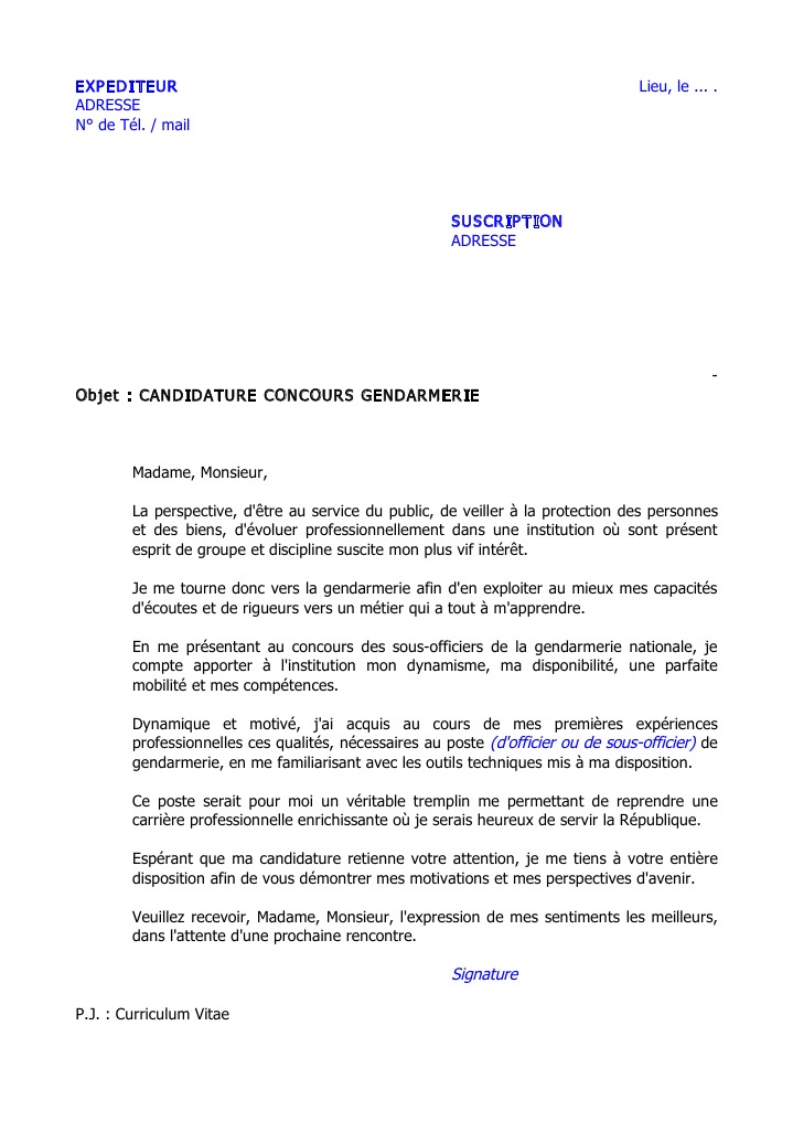 Exemple De Lettre De Motivation Pour Gendarme Adjoint Volontaire